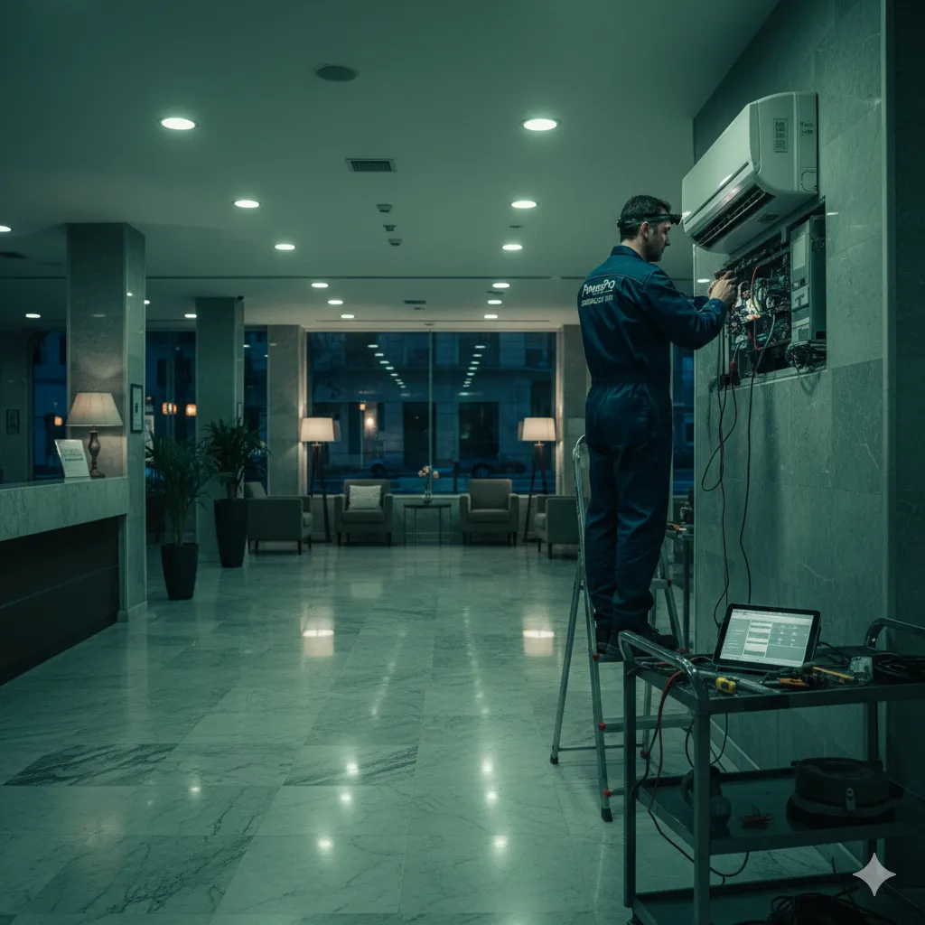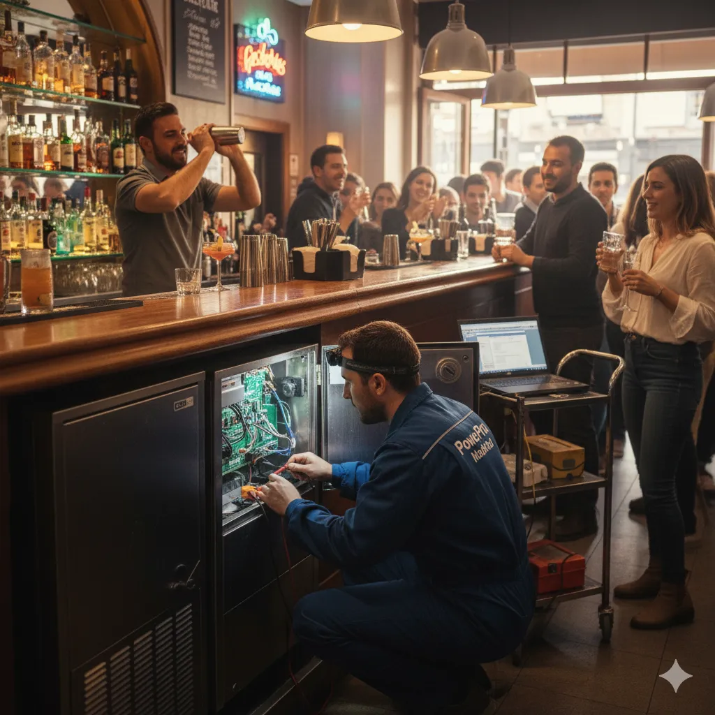 ¿Sin luz en el local o salta el diferencial y no se queda? Enviamos electricista comercial 24 h en Barcelona para urgencias eléctricas de negocios: reparación de cuadro eléctrico comercial, Alta Tensión (AT) y Media Tensión (MT), rearmado de interruptores y recuperación segura del suministro en tiendas, oficinas, hoteles, bares y discotecas. Además, servicio técnico hostelería 24 h para appliances comerciales: reparación lavavajillas industrial, hornos industriales (convección, pizza), campanas extractoras, máquinas de hielo, y frío comercial 24 h (cámaras frigoríficas, vitrinas, botelleros) junto a HVAC comercial (aire acondicionado cassette y conductos). Llegada rápida, diagnóstico y presupuesto in situ, factura y garantía para empresa de Seguros. Llámanos y restablece hoy la actividad de tu negocio.