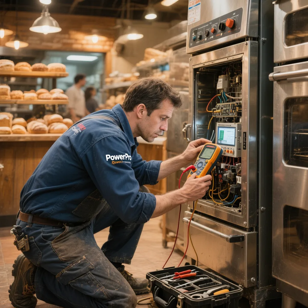Servicio de electricidad para locales y centros comerciales, Climatización y frío comercial (cámaras frigoríficas, vitrinas, botelleros), además de appliances de cocina profesional (lavavajillas industrial, hornos, campanas, freidoras) y lavandería industrial (lavadoras, secadoras, calandras). Llegamos en 30–60 min en Barcelona (algo más en alrededores). Diagnóstico y presupuesto in situ, restablecimiento seguro del servicio, factura y garantía.